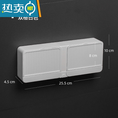 敬平双格翻盖壁挂式肥皂盒沥水免打孔香皂盒架家用浴室置物架带盖大号 沥水白色-双格