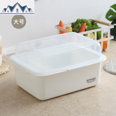 厨房碗筷收纳盒带盖带沥水架装放碗碟碗架餐具塑料碗柜台面收纳箱 三维工匠收纳层架
