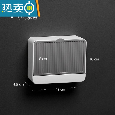 敬平双格翻盖壁挂式肥皂盒沥水免打孔香皂盒架家用浴室置物架带盖大号 沥水灰色-小号