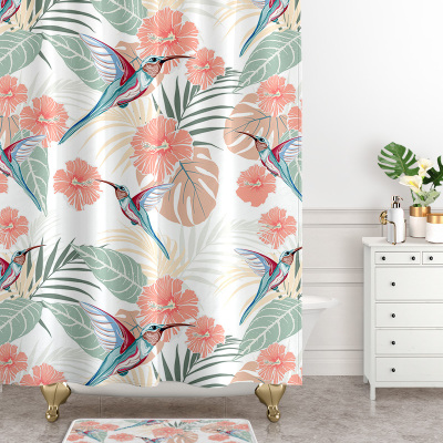 美式浴帘浴室防水布简易帘子套装免打孔隔断帘卫生间干湿分区屏风