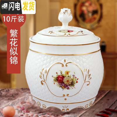 三维工匠欧式陶瓷米缸米桶储米箱15KG大号带盖密封储物罐家用陶瓷米缸欧式收纳桶