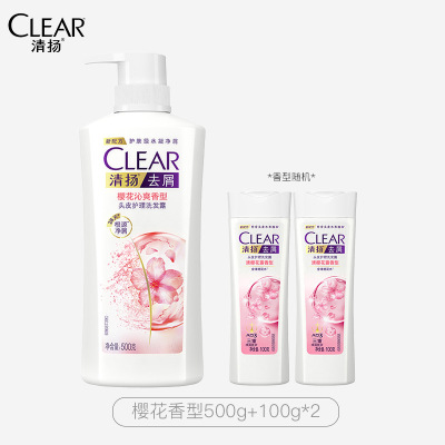 清扬去屑控油洗发水 蓬松洗发露 持久留香洗头膏洗发液男女士 樱花香型500g+100g(随机香型)*2瓶