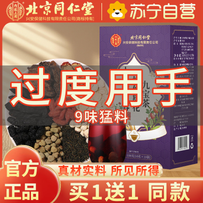 [买1送1同款]北京同仁堂参人参肉苁蓉杜仲雄花九宝茶100g枸杞男养生人参配五宝茶男士持久养茶肾