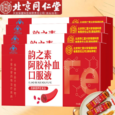 北京同仁堂韵之素阿胶补血口服液青少年儿童小孩子宝宝男女学生成人成年人中老年老人气血不足贫血中药提取补血乳酸亚铁口服液