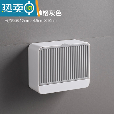 敬平创意翻盖皂盒壁挂式肥皂盒带沥水免打孔香皂盒透明大号双层肥皂盒 灰色[单格](放香皂)