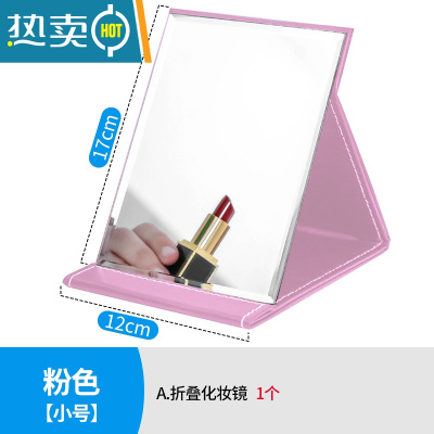 敬平折叠化妆镜子大小号女公主宿舍学生桌面台式便携翻盖式高清梳妆镜便携式用镜 粉红色小号