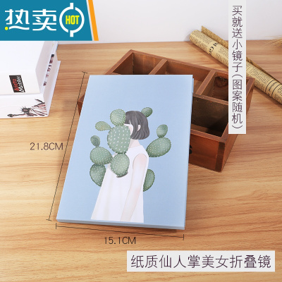 敬平镜子折叠化妆镜宿舍学生梳妆镜桌面翻盖式大号台式简约便携小镜子便携式用镜 仙人掌美女