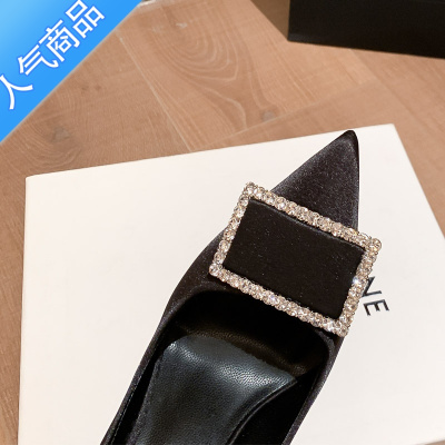 SUNTEK高级感高跟鞋女2023年新款气质设计感小众方扣水钻尖头细跟单鞋女