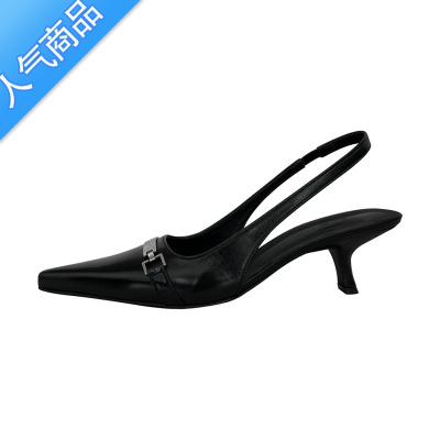 SUNTEK单鞋欧美尖头32-43码一字扣2022新款黑色女高跟鞋朋克风包头凉鞋