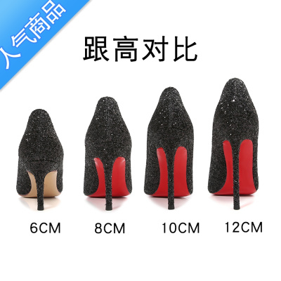 SUNTEK亮片超高跟鞋女细跟红底尖头浅口性感职业2023年春夏新款12cm单鞋