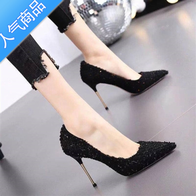 SUNTEK韩版仙女风高跟鞋女细跟2023年春秋新款网红尖头百搭浅口宴会单鞋