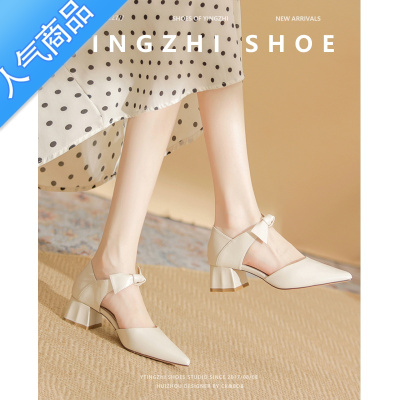 SUNTEKV家高跟鞋女2023年新夏浅口裸色尖头细跟后空单鞋法式包头凉鞋女