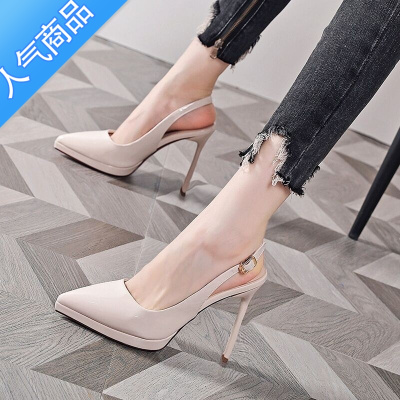 SUNTEK百搭裸色高跟鞋女细跟性感浅口尖头漆皮单鞋婚鞋女2021新款秋冬季