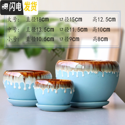 三维工匠花盆陶瓷大号特大家用带托盘简约绿植绿萝吊兰小多肉花盆 K3流釉蓝三件套 大花盆容器