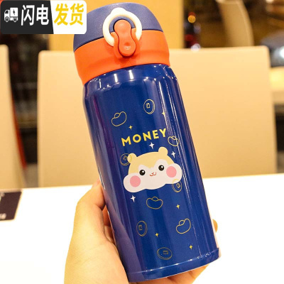 三维工匠本命年保温杯红色鼠年弹盖直饮口男女不锈钢创意便携潮流茶水杯子 蓝色350612吉祥鼠保温杯
