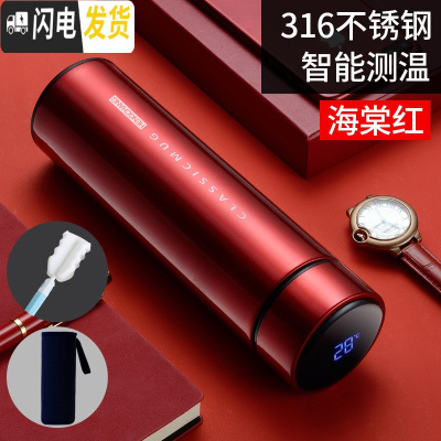 三维工匠智能保温杯男女便携学生水杯子温度显示测温感温多功能茶杯定制 海棠红316杯刷+杯套