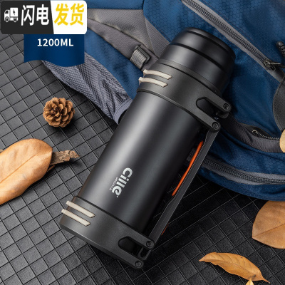 三维工匠保温杯大容量保温壶家用男女不锈钢水杯便携户外旅行水壶2 黑色1200