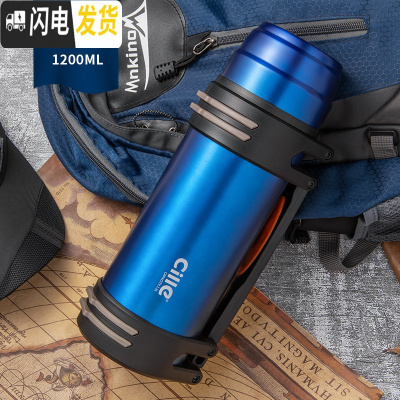 三维工匠保温杯大容量保温壶家用男女不锈钢水杯便携户外旅行水壶2 深蓝1200
