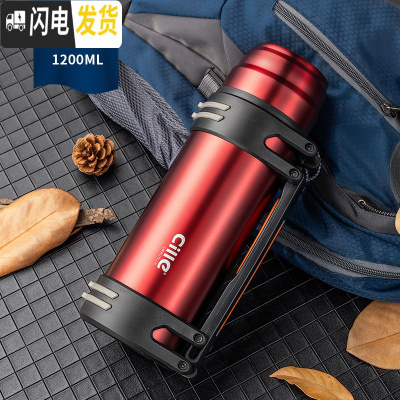 三维工匠保温杯大容量保温壶家用男女不锈钢水杯便携户外旅行水壶2 红色1200