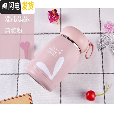 三维工匠手提迷你保温杯女士学生小巧便携小容量可爱儿童大肚水杯子 玫红色小号