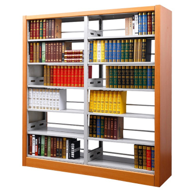 永格学校图书馆书架钢制资料展示架阅览室木护板双面书架 一列2组