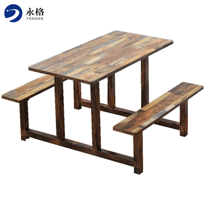 永格快餐桌椅小吃汉堡店面馆餐桌 4人连体快餐桌椅组合简约学校食堂复古连体餐桌