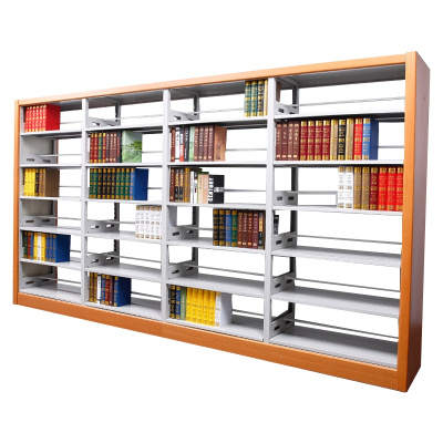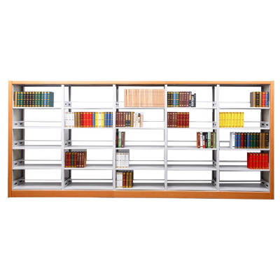 永格学校图书馆书架钢制资料展示架阅览室木护板双面书架 一列5组