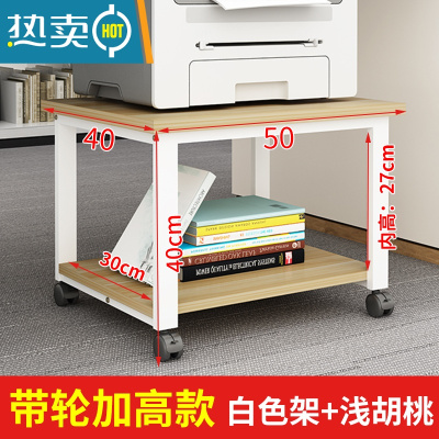 敬平实木打印机置物架桌面收纳架子办公室桌下底座落地移动置物架带轮