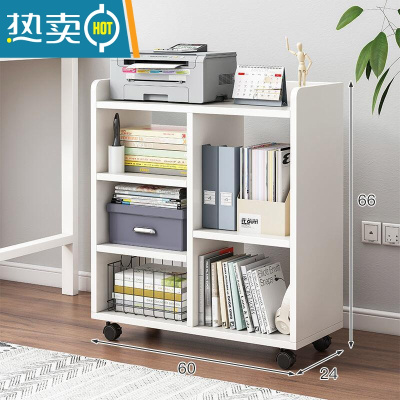 敬平办公室置物架落地桌边移动书架带轮打印机文件书桌下收纳架子小型