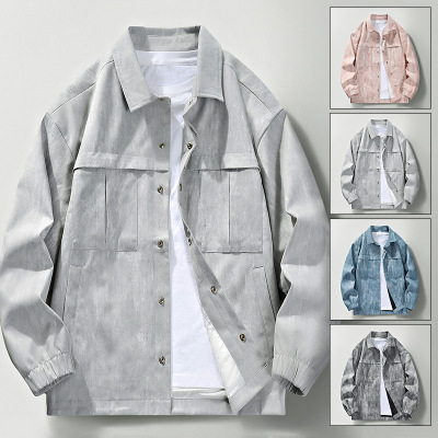春秋季新款翻领工装休闲夹克男士港风潮流百搭长袖衬衣夹克男外套