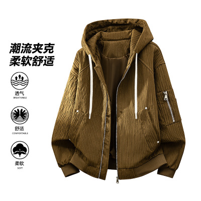 男装新款日系韩版夹克男连帽宽松青少年休闲百搭夹克潮牌男士外套