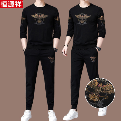 恒源祥春秋季高端桑蚕丝男士休闲运动服套装男装潮流秋装男装一套