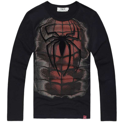 VaLS男装秋款T恤男装蜘蛛侠个性卡通印花圆领长袖T恤010200142(黑色/L)