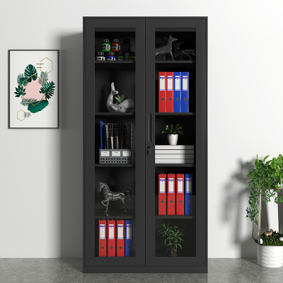 初嘉WJGT-030钢制文件柜窄边资料柜拆装档案柜带锁储物柜纯黑通玻文件柜