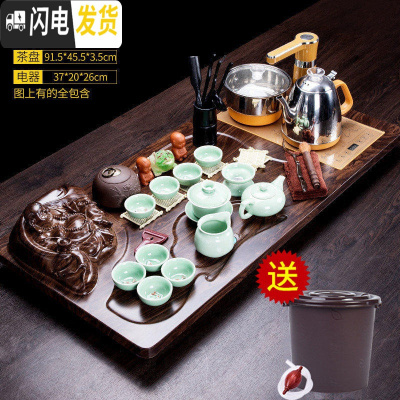 三维工匠茶盘套装全自动一体家用实木简约茶海中式功夫茶具石头茶台 赠桶+管]笑口弥勒佛棕色四合一实木大茶盘搭mz自动烧水壶