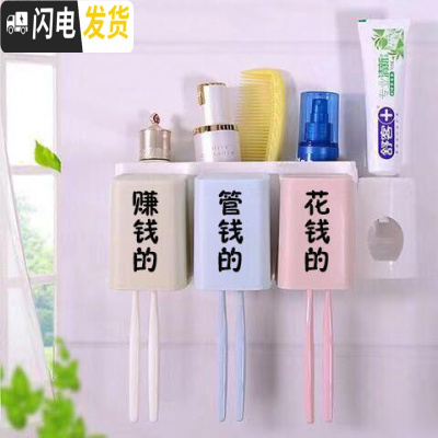 三维工匠牙杯架挂墙壁挂挂牙膏刷牙杯一家四口刷牙漱口杯牙刷置物架四人 C50-3口+牙膏器(爸妈女)牙刷架/牙具座