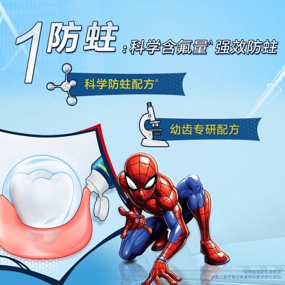 佳洁士 防蛀固齿低氟2-3-6-12岁儿童牙膏 蜘蛛侠草莓味90g