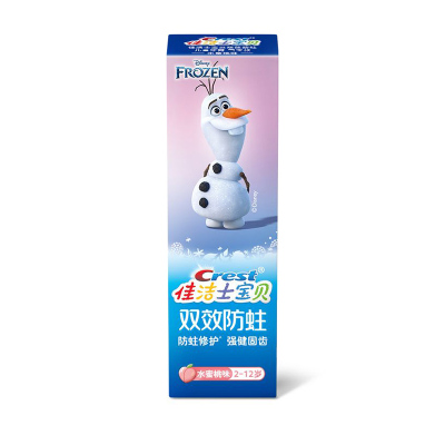 佳洁士 双效防蛀含氟 2-3-6-12岁换牙期儿童牙膏水蜜桃味 雪宝90g