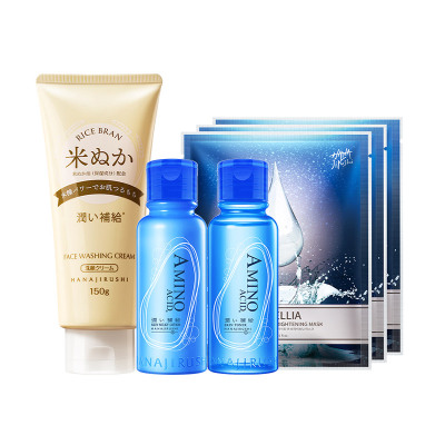 花印净肤水漾面膜护肤套装(米糠洁面150g+水漾化妆水99ml+水漾乳液99ml+山茶花面膜3P)