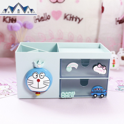 可爱卡通抽屉式化妆品收纳盒粉色少女宿舍整理护肤塑料置物架笔筒 三维工匠