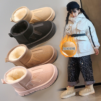 冬儿童宝宝棉鞋时尚字母加绒童鞋鞋羊羔毛保暖女孩中大童短靴