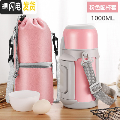 三维工匠保温瓶宝宝婴儿外出冲奶粉便携保温杯家用大容量1000户外水壶女 粉色