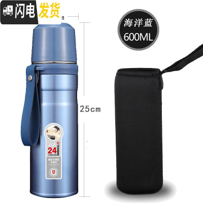 三维工匠大容量保温杯瓶女水杯壶600婴儿宝宝便携冲奶粉儿童800外出1000 海洋蓝600