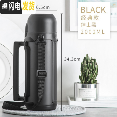 三维工匠大容量保温瓶带盖冲奶粉1000女便携壶可喝水婴儿可爱外出保温杯 黑色2000