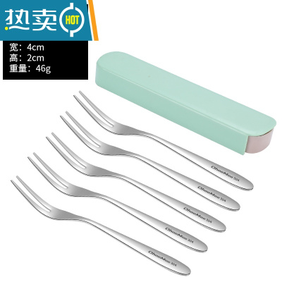 敬平304不锈钢水果叉套装5支装三齿甜品叉点心可爱蛋糕叉创意儿童果签 2齿水果叉5支装(送绿色盒)