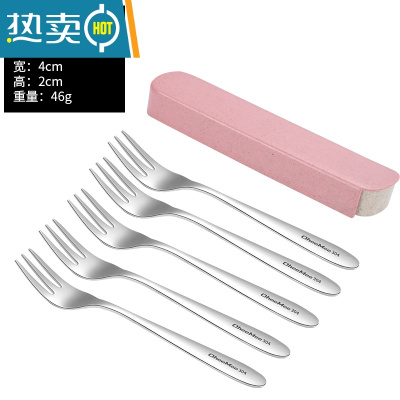 敬平304不锈钢水果叉套装5支装三齿甜品叉点心可爱蛋糕叉创意儿童果签 2齿水果叉5支装(送粉色盒)