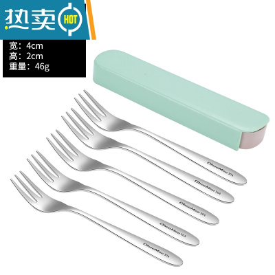 敬平304不锈钢水果叉套装5支装三齿甜品叉点心可爱蛋糕叉创意儿童果签 3齿水果叉5支装(送绿色盒)