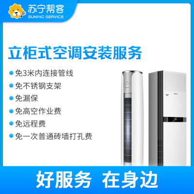 立柜式空调安装服务 含3米内连接管线不锈钢支架及漏电保护开关 免高空作业费远程费及一次普通砖墙打孔费 帮客上门服务