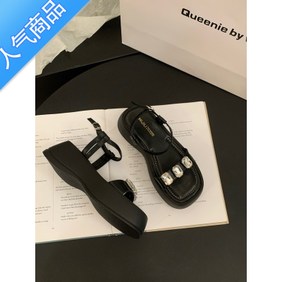 SUNTEK松糕厚底高级感水钻凉鞋女鞋子2023年新款夏季休闲时尚增高罗马鞋