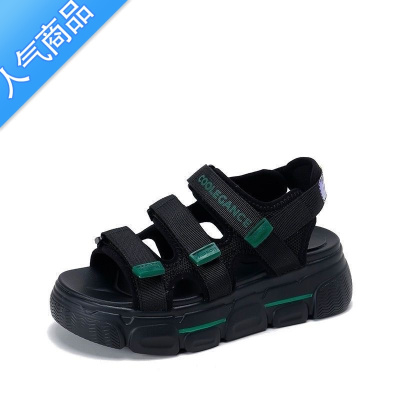 SUNTEK运动凉鞋女夏厚底松糕魔术贴韩版时尚罗马沙滩鞋2023夏季女鞋